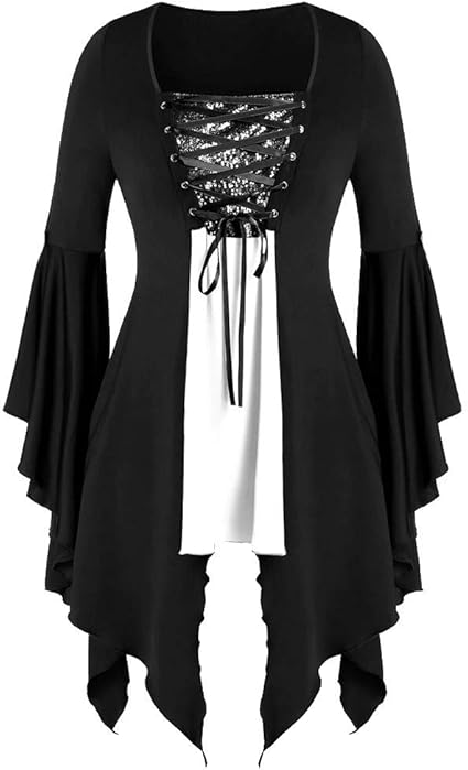 Corsetto Raven Top Gotico Medievale Lungo Elastico Halloween Strega Costume Da Festa Abiti Con Paillettes Cinturini Maniche A Tromba Maniche A Farfalla Abbigliamento Da Donna Con Orlo Irregolare Amazon It Casa E Cucina